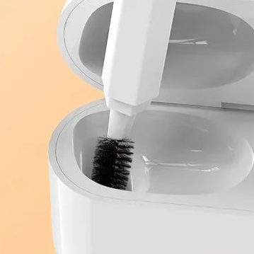 Szybko i łatwo wyczyścisz szczoteczką nawet trudnodostępne zakamarki w etui i słuchawkach.